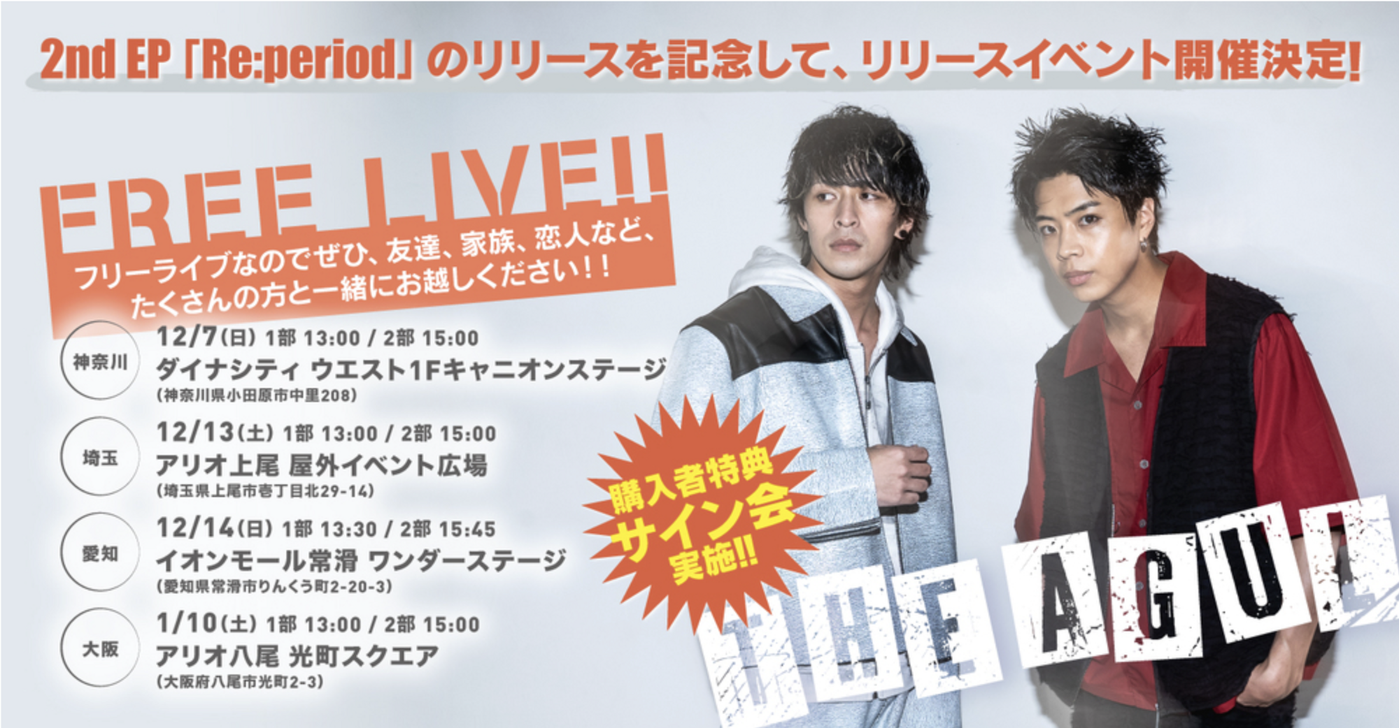 THE AGUL 2nd EP「Re:period」Release Event開催決定!!