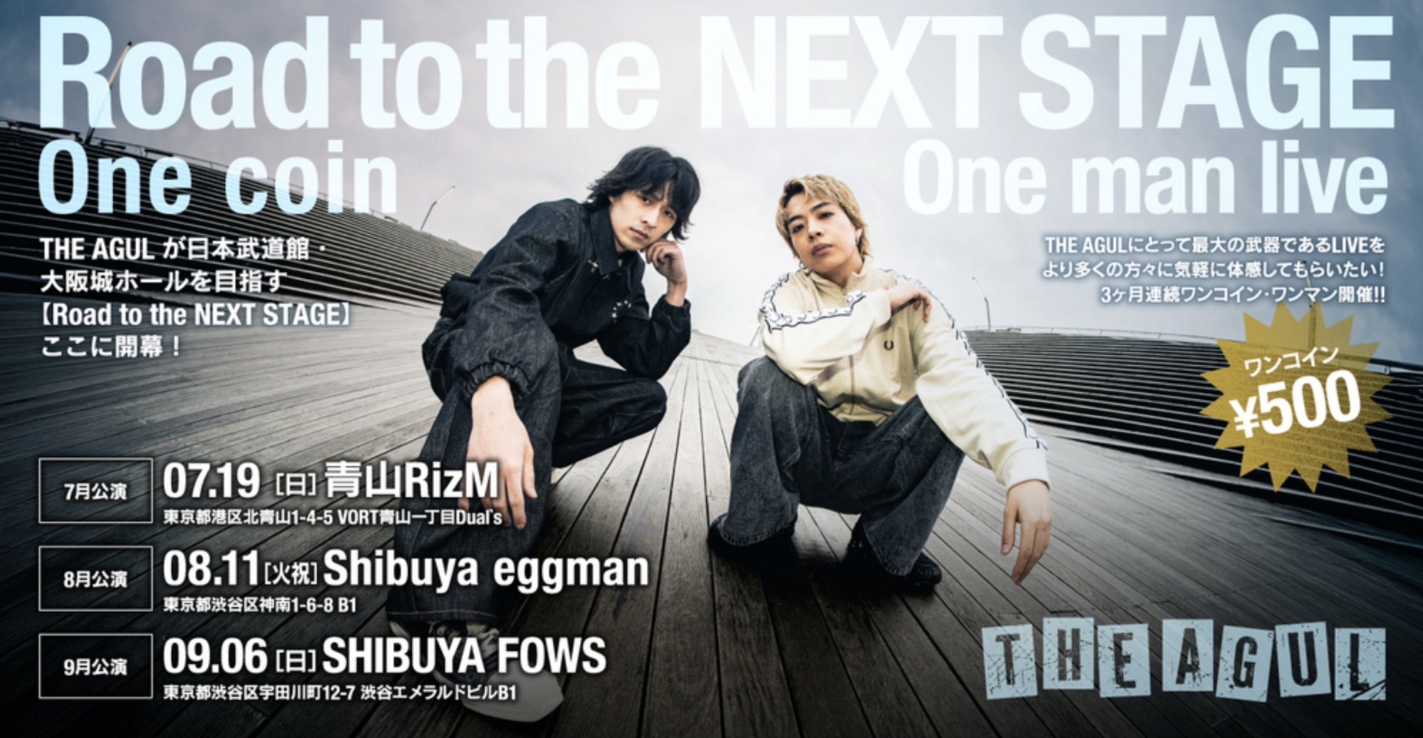 【THE AGUL】Road to the NEXT STAGE One coin One man live開催決定!